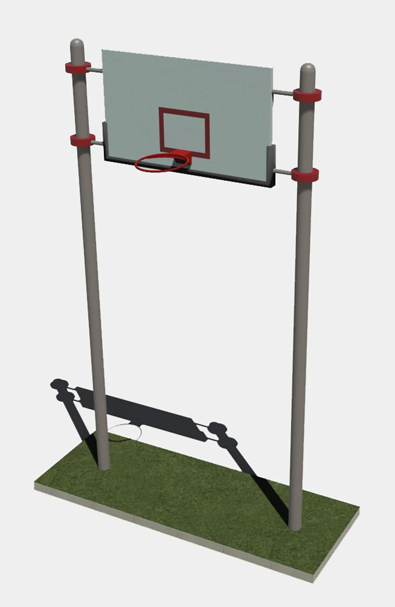 Основой для баскетбольной стойки служат две опорные трубы высотой 3100 мм от поверхности основания и две горизонтальные перекладины длиной 1200 мм.