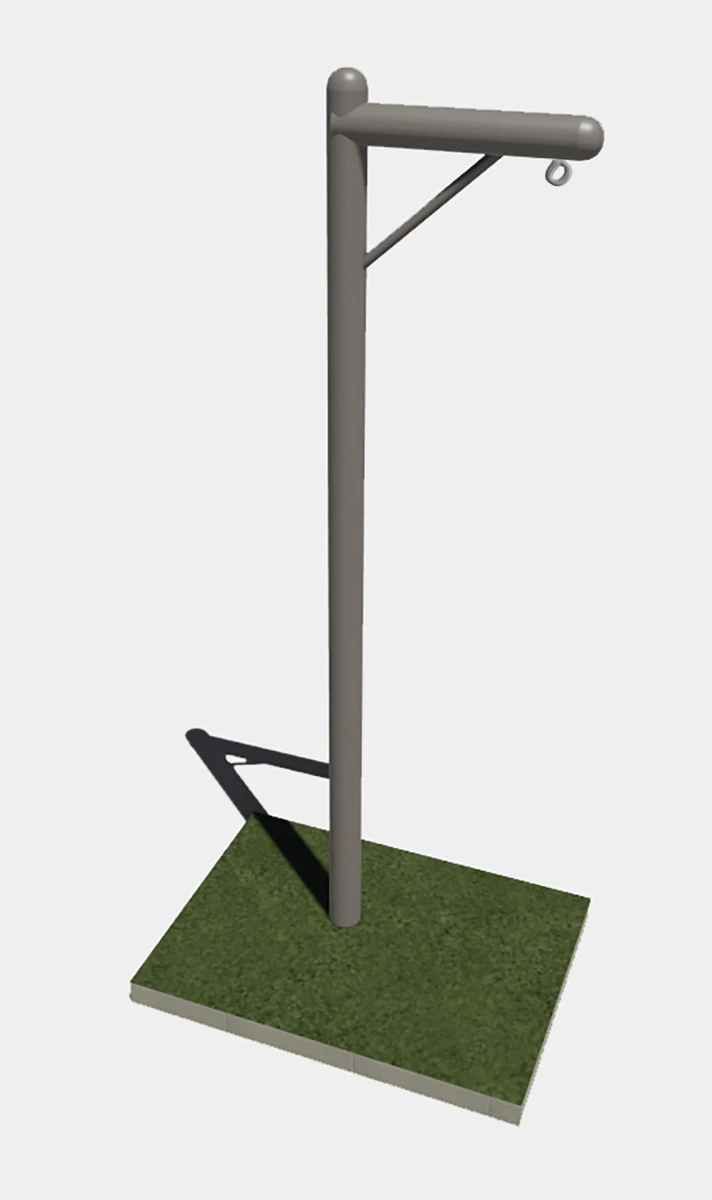 Опорная стойка размером 2600 мм от поверхности основания и сварной каркас служит для подвешивания боксерского мешка. Размер выноса 600мм.