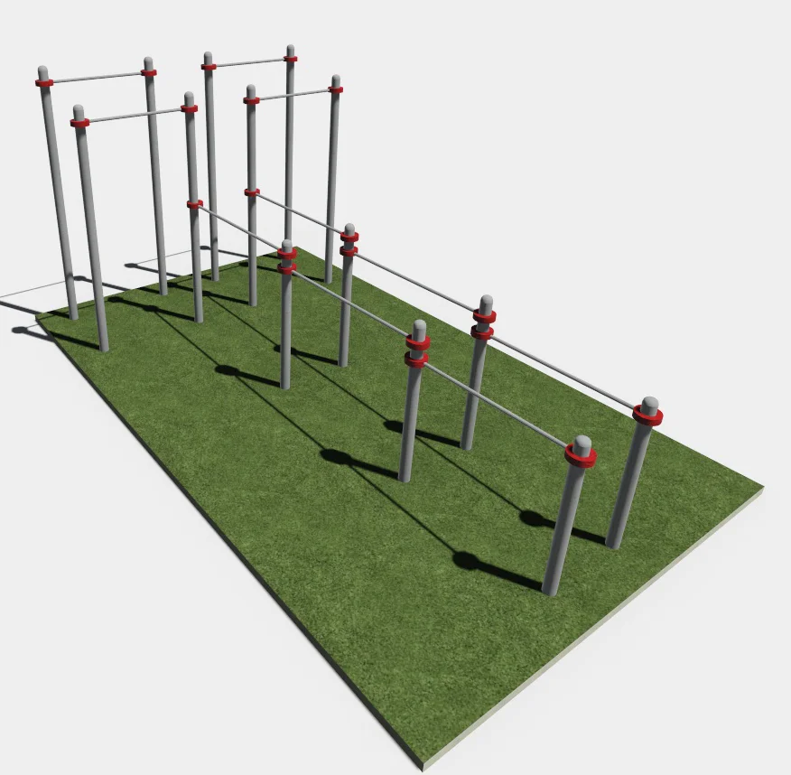 Этот мультифункциональный комплекс предполагает исполнение множества упражнений и элементов, таких как: подтягивания, упражнений для пресса, отжиманий. Высоту перекладин можно регулировать.